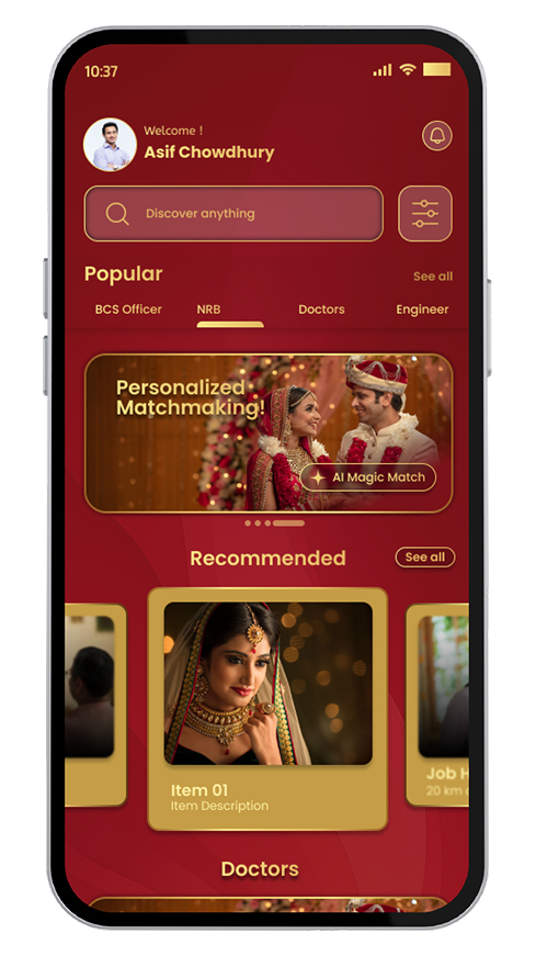 আমরা আধুনিক প্রযুক্তি এবং ঐতিহ্যবাহী ম্যাচমেকিংয়ের সংমিশ্রণে আপনাকে আপনার মনের মানুষ খুঁজে পেতে সাহায্য করি।